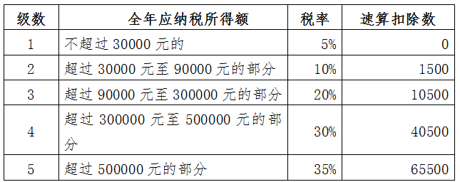 对纳税人取得的个体工商户的生产、经营所得和对企事业单位的承包经营、承租经营所得,按5000元/月的基本减除费用进行扣除,同时适用新的经营所得税率表: 个体工商户的生产、经营所得和对企事业单位的承包经营、承租经营所得适用的个人所得税税率表