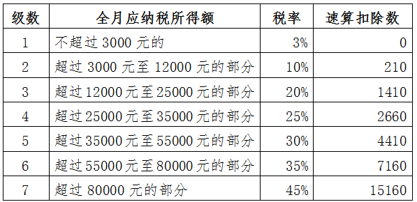工资薪金所得适用的个人所得税税率表